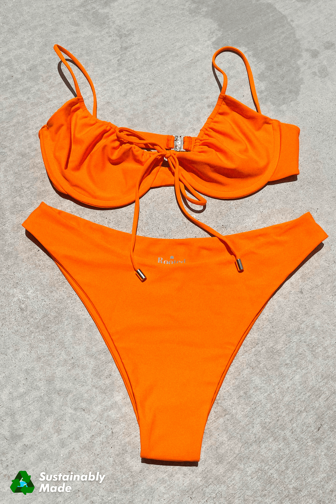 Rooted Swim skimpy bright poppy orange bikini bottoms, best for tanning